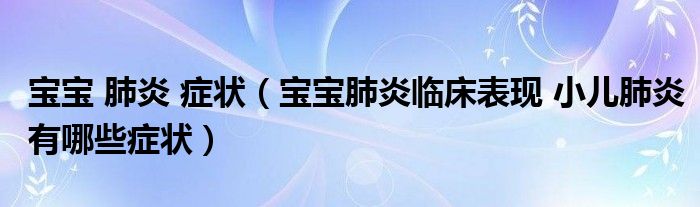 宝宝 肺炎 症状(宝宝肺炎临床表现 小儿肺炎有哪些症状)