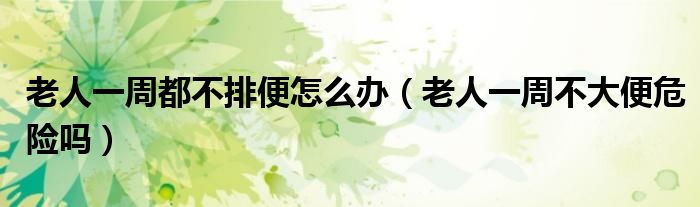 大家好,乐天来为大家解答以下的问题,老人一周都不排便怎么办,老人一周不大便危险吗很多人还不知道,现在让我们一起来看看吧!