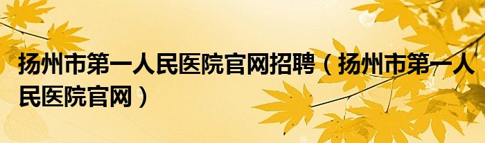 关于扬州市第一人民医院官网招聘,扬州市第一人民医院官网这个很多人还不知道,今天菲菲来为大家解答以上的问题,现在让我们一起来看看吧!