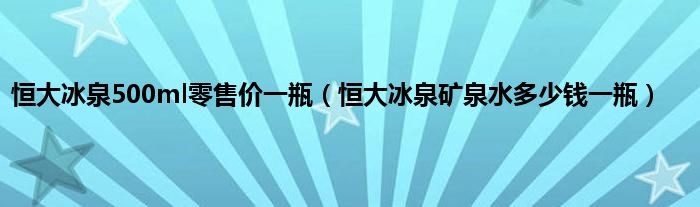 大家好,综合小编来为大家讲解下恒大冰泉500ml零售价一瓶,恒大冰泉矿泉水多少钱一瓶这个很多人还不知道,现在让我们一起来看看吧!