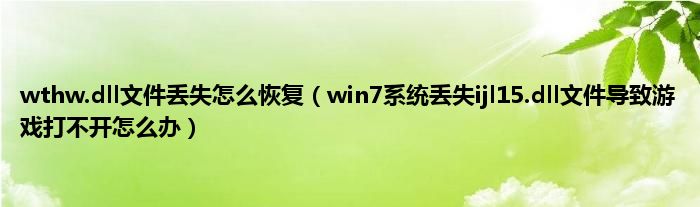 大家好,综合小编来为大家讲解下wthw.dll文件丢失怎么恢复,win7系统丢失ijl15.dll文件导致游戏打不开怎么办这个很多人还不知道,现在让我们一起来看看吧!