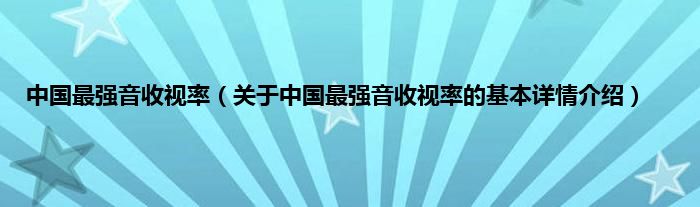 中国最强音收视率(关于中国最强音收视率的基本详情介绍)