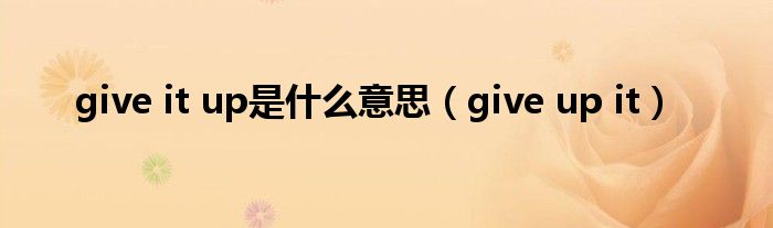大家好,小问来为大家解答以上问题。give it up是什么意思,give up it这个很多人还不知道,现在让我们一起来看看吧!