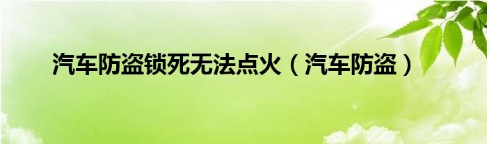 以上就是【汽车防盗锁死无法点火,汽车防盗】相关内容。