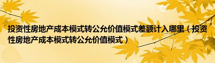 关于投资性房地产成本模式转公允价值模式差额计入哪里,投资性房地产成本模式转公允价值模式这个很多人还不知道,今天菲菲来为大家解答以上的问题,现在让我们一起来看看吧!