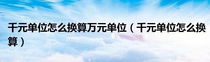 关于千元单位怎么换算万元单位,千元单位怎么换算这个很多人还不知道,今天菲菲来为大家解答以上的问题,现在让我们一起来看看吧!
