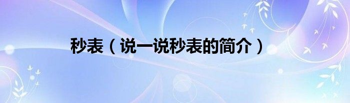 秒表(说一说秒表的简介)