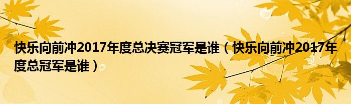 1、快乐向前冲2017年度总冠军是刘飞。