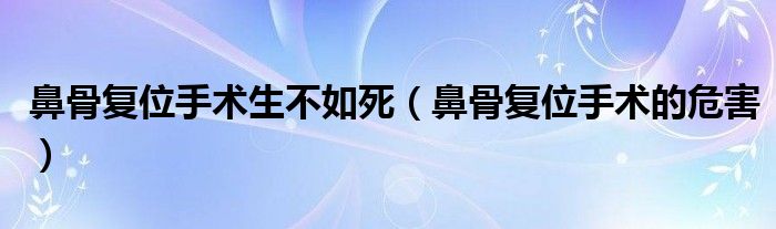 大家好,乐天来为大家解答以下的问题,鼻骨复位手术生不如死,鼻骨复位手术的危害很多人还不知道,现在让我们一起来看看吧!