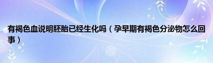 大家好,乐天来为大家解答以下的问题,有褐色血说明胚胎已经生化吗,孕早期有褐色分泌物怎么回事很多人还不知道,现在让我们一起来看看吧!