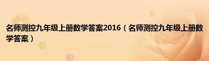 关于名师测控九年级上册数学答案2016,名师测控九年级上册数学答案这个很多人还不知道,今天菲菲来为大家解答以上的问题,现在让我们一起来看看吧!