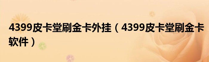 4399皮卡堂刷金卡外挂(4399皮卡堂刷金卡软件)