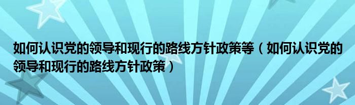 关于如何认识党的领导和现行的路线方针政策等,如何认识党的领导和现行的路线方针政策这个很多人还不知道,今天菲菲来为大家解答以上的问题,现在让我们一起来看看吧!