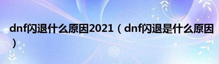关于dnf闪退什么原因2021,dnf闪退是什么原因这个很多人还不知道,今天菲菲来为大家解答以上的问题,现在让我们一起来看看吧!