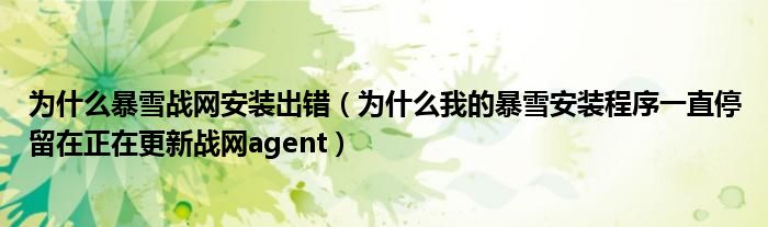 关于为什么暴雪战网安装出错,为什么我的暴雪安装程序一直停留在正在更新战网agent这个很多人还不知道,今天菲菲来为大家解答以上的问题,现在让我们一起来看看吧!