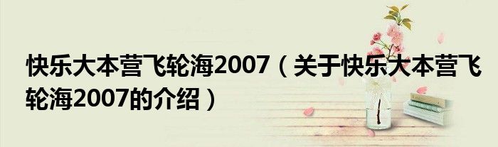 大家好,小夏来为大家解答以上的问题。快乐大本营飞轮海2007,关于快乐大本营飞轮海2007的介绍很多人还不知道,现在让我们一起来看看吧!