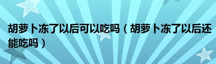大家好,小夏来为大家讲解下。胡萝卜冻了以后可以吃吗,胡萝卜冻了以后还能吃吗很多人还不知道,现在让我们一起来看看吧!