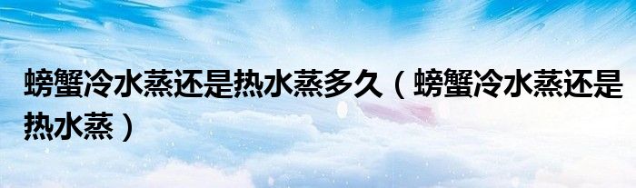 关于螃蟹冷水蒸还是热水蒸多久,螃蟹冷水蒸还是热水蒸这个很多人还不知道,今天菲菲来为大家解答以上的问题,现在让我们一起来看看吧!