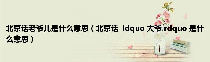 大家好,小联来为大家解答以上的问题。北京话老爷儿是什么意思,北京话 ldquo 大爷 rdquo 是什么意思这个很多人还不知道,现在让我们一起来看看吧!