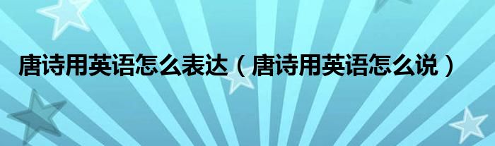 唐诗用英语怎么表达(唐诗用英语怎么说)
