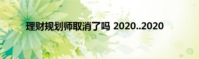 理财规划师取消了吗 2020..2020