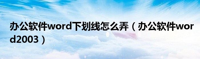 今天小饼为大家解答以下问题,关于办公软件word下划线怎么弄,办公软件word2003很多人还不知道,现在让我们一起来看看吧!
