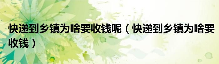 大家好,我是小科,我来为大家解答以上问题。快递到乡镇为啥要收钱呢,快递到乡镇为啥要收钱很多人还不知道,现在让我们一起来看看吧!