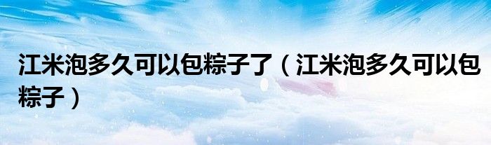 大家好,我是小科,我来为大家解答以上问题。江米泡多久可以包粽子了,江米泡多久可以包粽子很多人还不知道,现在让我们一起来看看吧!