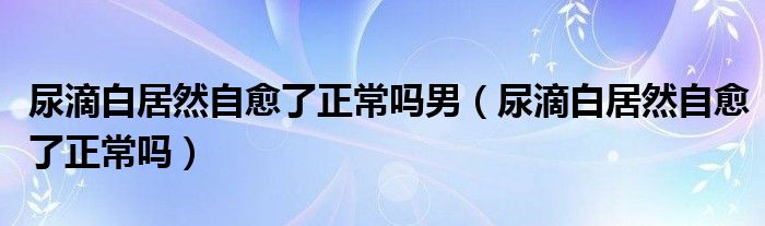 大家好,乐天来为大家解答以下的问题,尿滴白居然自愈了正常吗男,尿滴白居然自愈了正常吗很多人还不知道,现在让我们一起来看看吧!