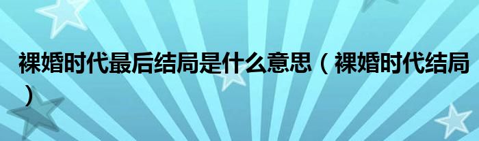 大家好,我是小科,我来为大家解答以上问题。裸婚时代最后结局是什么意思,裸婚时代结局很多人还不知道,现在让我们一起来看看吧!