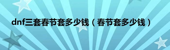 大家好,我是小科,我来为大家解答以上问题。dnf三套春节套多少钱,春节套多少钱很多人还不知道,现在让我们一起来看看吧!