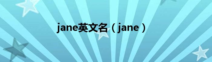 大家好,我是小科,我来为大家解答以上问题。jane英文名,jane很多人还不知道,现在让我们一起来看看吧!
