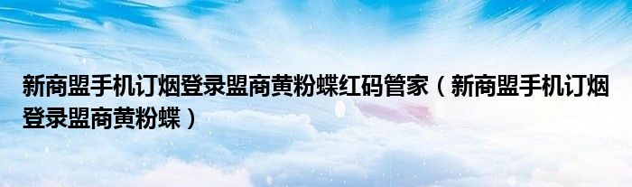 新商盟手机订烟登录盟商黄粉蝶红码管家(新商盟手机订烟登录盟商黄粉蝶)