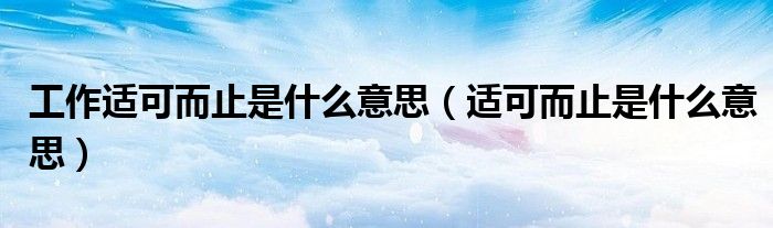 大家好,我是小科,我来为大家解答以上问题。工作适可而止是什么意思,适可而止是什么意思很多人还不知道,现在让我们一起来看看吧!