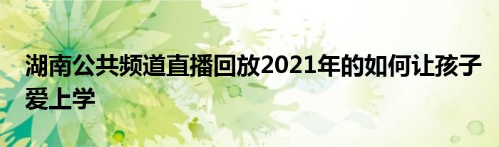 湖南公共频道直播回放2021年的如何让孩子爱上学