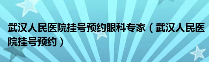 武汉人民医院挂号预约眼科专家(武汉人民医院挂号预约)