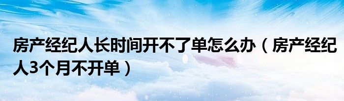 房产经纪人长时间开不了单怎么办(房产经纪人3个月不开单)