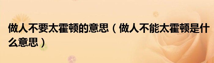 做人不要太霍顿的意思(做人不能太霍顿是什么意思)
