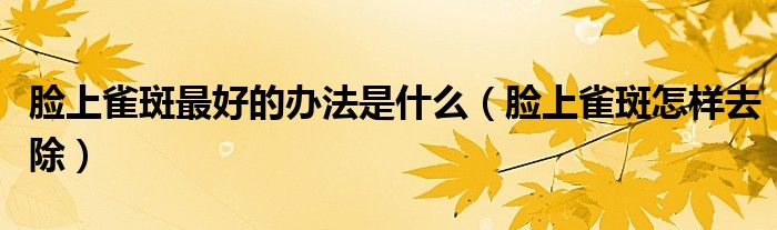 脸上雀斑最好的办法是什么(脸上雀斑怎样去除)
