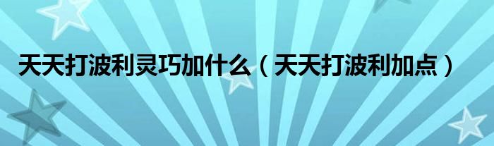 大家好,来宝来为大家解答以下问题,天天打波利灵巧加什么,天天打波利加点很多人还不知道,今天让我们一起来看看吧!
