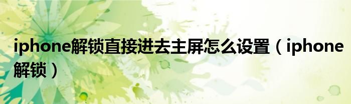 大家好,来宝来为大家解答以下问题,iphone解锁直接进去主屏怎么设置,iphone解锁很多人还不知道,今天让我们一起来看看吧!