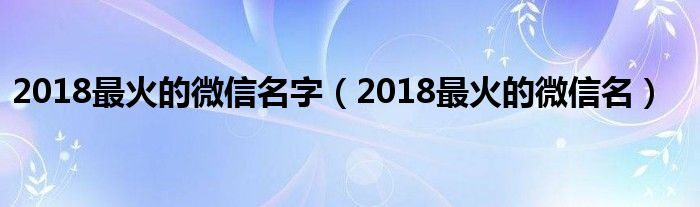 大家好,来宝来为大家解答以下问题,2018最火的微信名字,2018最火的微信名很多人还不知道,今天让我们一起来看看吧!