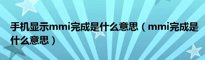 大家好,小晋来为大家解答以下问题,关于手机显示mmi完成是什么意思,mmi完成是什么意思很多人还不知道,今天让我们一起来看看吧!