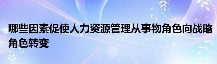 关于哪些因素促使人力资源管理从事物角色向战略角色转变这个很多人还不知道,今天菲菲来为大家解答以上的问题,现在让我们一起来看看吧!