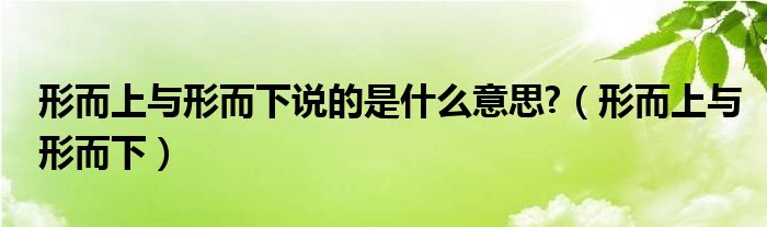 形而上与形而下说的是什么意思?(形而上与形而下)
