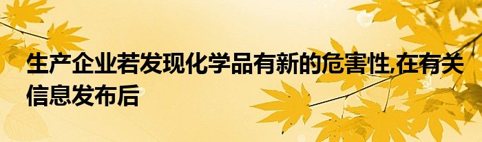 关于生产企业若发现化学品有新的危害性,在有关信息发布后这个很多人还不知道,今天菲菲来为大家解答以上的问题,现在让我们一起来看看吧!