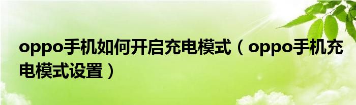 oppo手机如何开启充电模式(oppo手机充电模式设置)