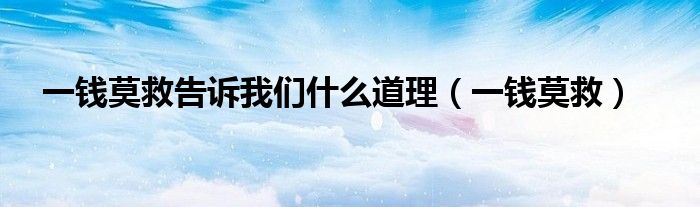 关于一钱莫救告诉我们什么道理,一钱莫救这个很多人还不知道,今天菲菲来为大家解答以上的问题,现在让我们一起来看看吧!