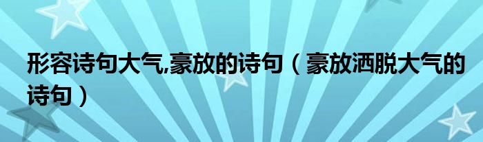 形容诗句大气,豪放的诗句(豪放洒脱大气的诗句)