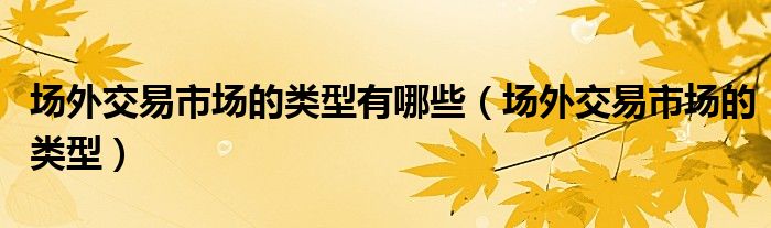 关于场外交易市场的类型有哪些,场外交易市场的类型这个很多人还不知道,今天菲菲来为大家解答以上的问题,现在让我们一起来看看吧!